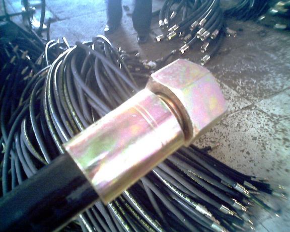 一種吹氧膠管,屬于純氧頂吹煉鋼轉(zhuǎn)爐氧槍與氧源之間連接的一種高壓輸送氧氣的柔性工具.它由法蘭接頭、內(nèi)膠層、增強層、端部加固層、端部膠片、端部補強層、骨架層、中膠層、外膠層所組成.工作壓力15至20kg/cm2,真空度600毫米汞柱,耐轉(zhuǎn)爐輻射溫度250度以上.與普通輸吸水膠管比,還具有耐熱、耐疲勞、耐燃、耐老化,使用壽命長,操作安全,更換方便等優(yōu)點.適用于120噸至150噸轉(zhuǎn)爐高壓吹氧輸水.